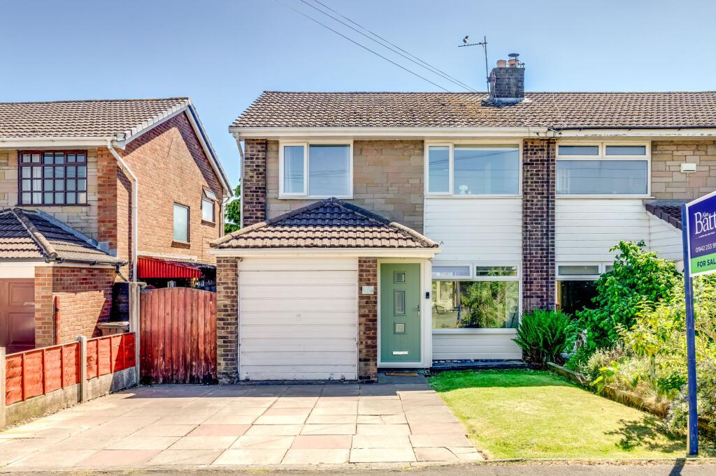 Charming 3-bed semi-detached in Standish. Tranquil, private location with no rear overlooking. Stylish interiors, conservatory, lawn garden, garage, close to amenities. Perfect modern sanctuary.