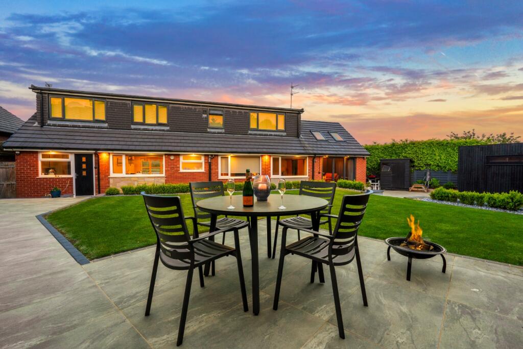 A rare and beautifully extended detached home on a generous corner plot in Bromley Cross, offering stylish space, high spec finishes, stunning views, and versatile family living