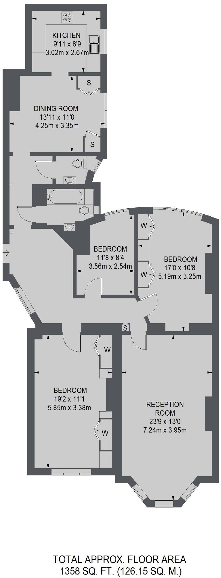 Recently refurbished, this spacious three double bedroom flat has a modern eat-in kitchen/dining space, large reception, bathroom suite and separate W/C.