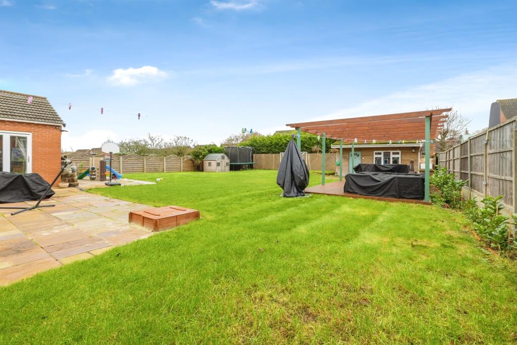 This four-bedroom detached bungalow in Metheringham, Lincolnshire, presents itself as a desirable family home. Located on Lincoln Road, it benefits from its proximity to local amenities and good schools such as The Metheringham Primary School which is within a comfortable walking distance, adding to the convenience of the location. The property appears well-maintained and renovated, featuring an updated kitchen and bathrooms. The spacious interior is enhanced by a significant garden; images reveal a large outdoor space, ideal for families and those seeking outdoor living. This expansive garden area, combined with the plentiful off-street parking, contributes positively to the property’s overall appeal. While specific square footage data is missing from the provided listing details for both the property and its surroundings, making a detailed price-per-square-foot comparison impossible; however, when considering the size, features, and location of comparable properties in the area, the listed price appears in line with market expectations.