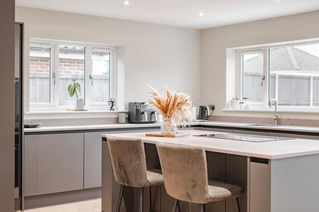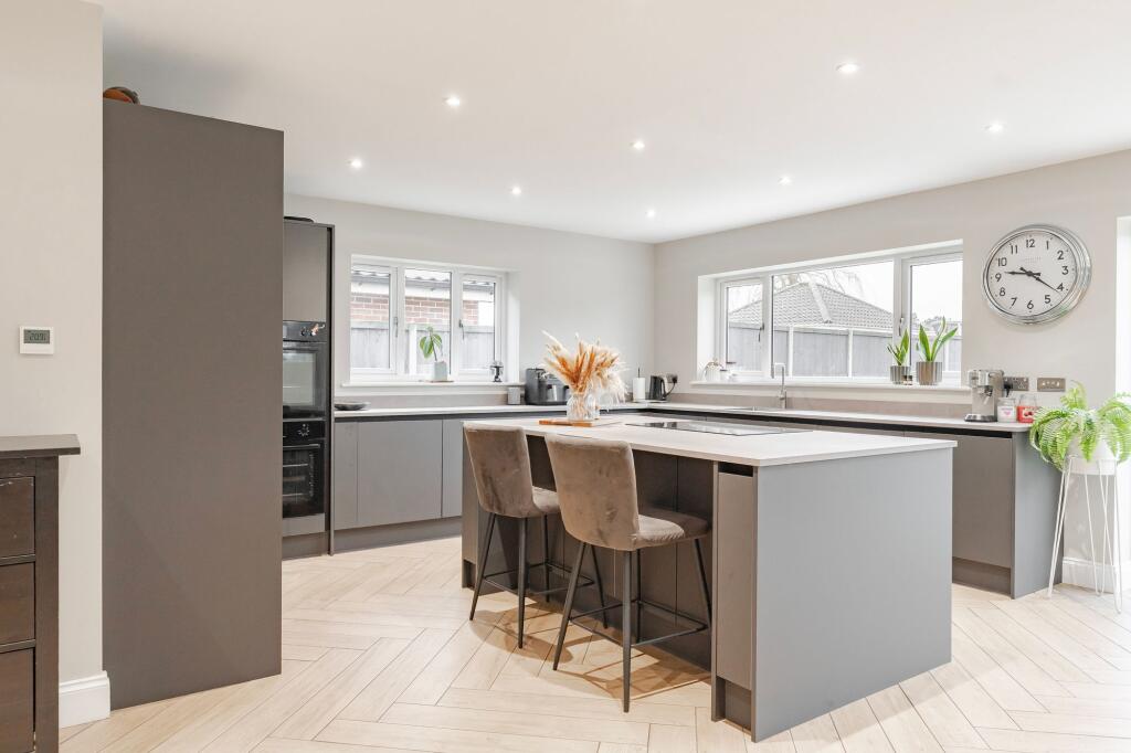 This five-bedroom, two-bathroom property located on Devon Avenue in Hellesdon, Norwich, presents itself as a well-maintained and extensively renovated home. The images showcase a modern, contemporary interior with a high-quality finish. The kitchen is a particular highlight, featuring a large island and ample counter space. Bathrooms are also updated and stylish. The property benefits from a good-sized garden, offering outdoor space, and a substantial paved driveway providing ample parking. The location in Hellesdon offers proximity to several well-regarded schools, making it attractive to families. While the exact plot size is unavailable, the images suggest a reasonably sized garden and outdoor space. The list price appears to be within the range of similar properties in the area, though a more precise comparison would require additional data on price per square foot for directly comparable properties in the immediate vicinity. Overall, the property presents a strong package for potential buyers seeking a modern, well-maintained family home in a convenient location.