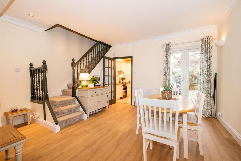 This is a three-bedroom house on Watchetts Road in Camberley, presented by Knights Property Services. The property benefits from its location, offering convenient access to schools and transportation links, including Camberley train station. The interior appears to be in good condition, featuring modern finishes and well-maintained rooms. The house includes a garden, providing outdoor space. Priced at £425,000, the property seems reasonably valued compared to the local market, with an average price per square foot of £551 in the area. The property retains some traditional features while incorporating modern updates.