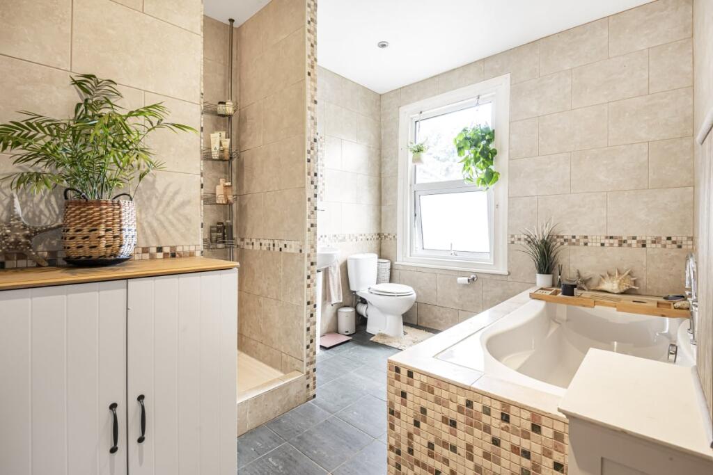 This is a three-bedroom terraced house located in the Chase area of Enfield. The property offers 1,194.79 sqft of living space and includes a garden. The house appears to be in generally good condition, with a modern bathroom. The location is convenient, with nearby schools and transportation options. While the list price is slightly above the average for the area, the property’s size and condition make it a desirable home.