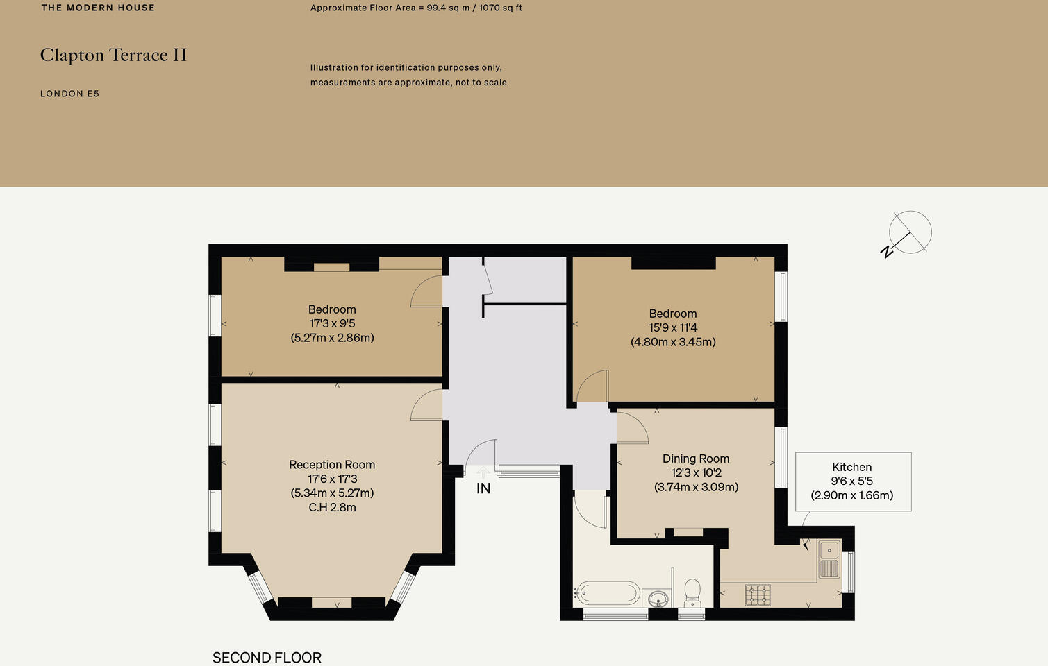 This is a two-bedroom flat in Clapton Terrace, Hackney, London. The property is listed with The Modern House. The flat appears to be in reasonable condition, with a mix of period features and modern updates. The location is desirable, with good access to transport and local amenities. However, the price seems high compared to the average price in the area.