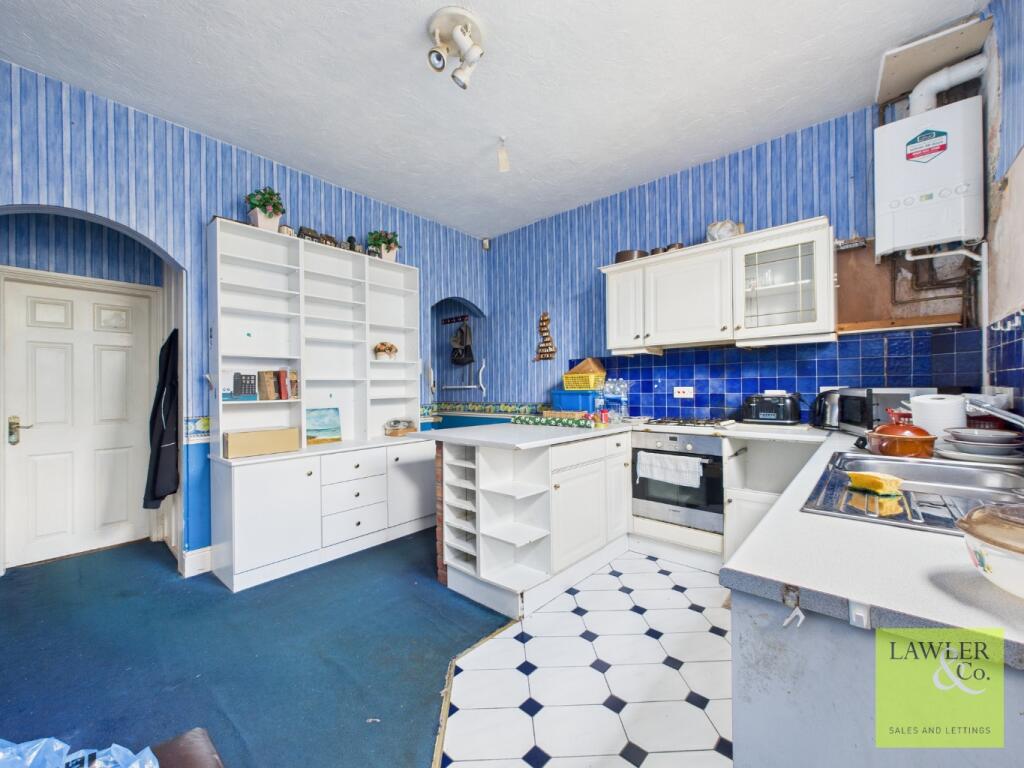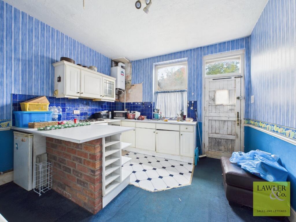 This two-bedroom mid-terrace home offers a fantastic opportunity for buyers looking to put their own stamp on a property. Requiring full renovation, the home boasts a spacious living room at the front, followed by a kitchen with excellent potential to be transformed into a modern, functional space.