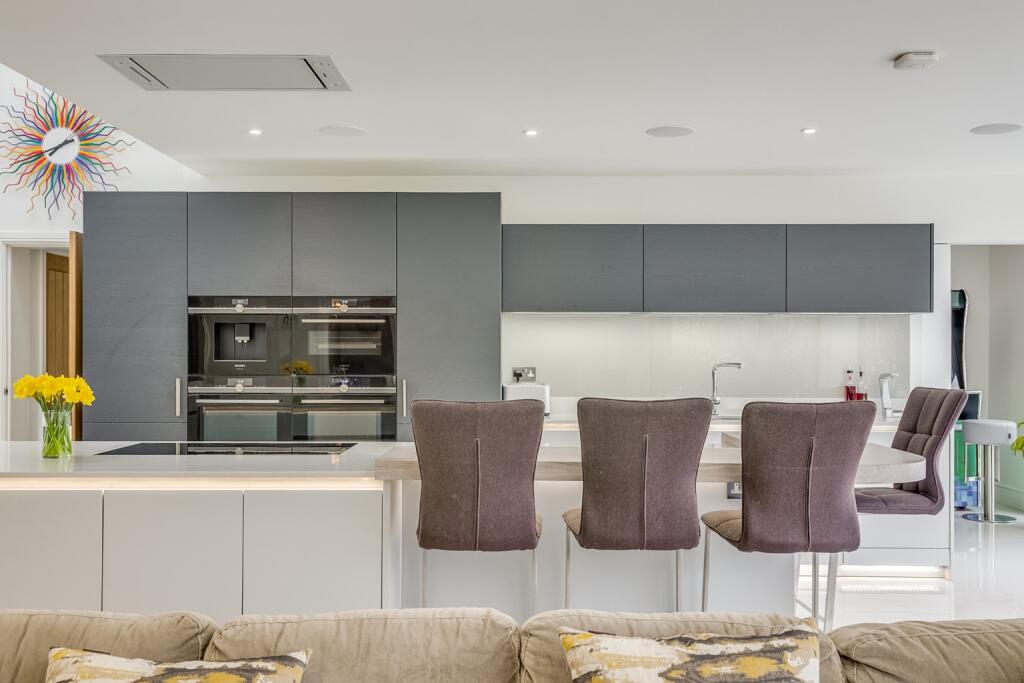 An exquisite four-bedroom, three-bathroom detached residence offering over 3,300 sq. ft of luxurious living space. This stunning home boasts a grand entrance hall, triple-aspect living room, and a remarkable 25ft kitchen/family room with bi-folding doors opening to a beautifully landscaped garden. A