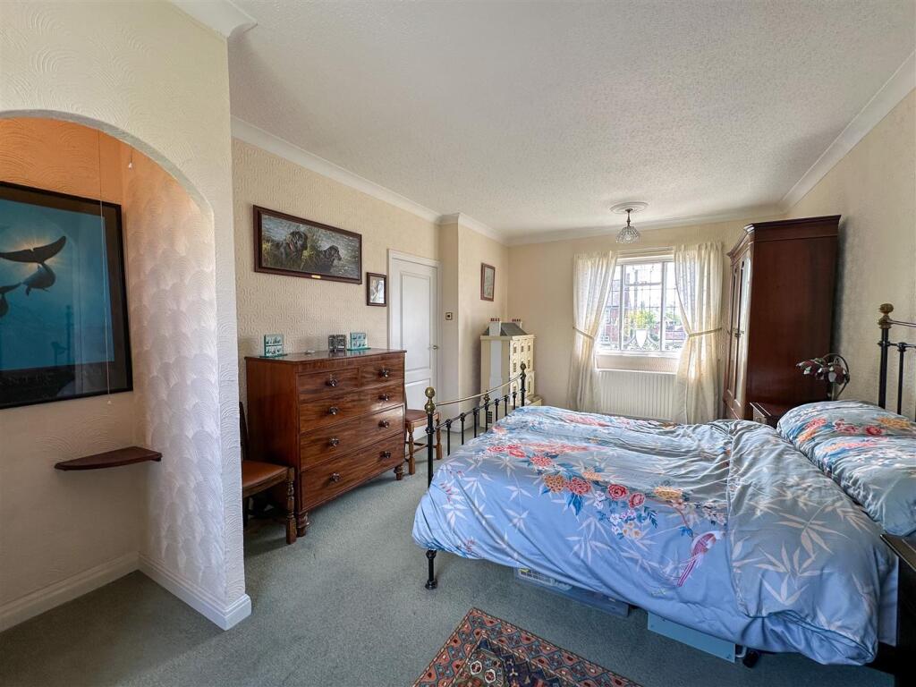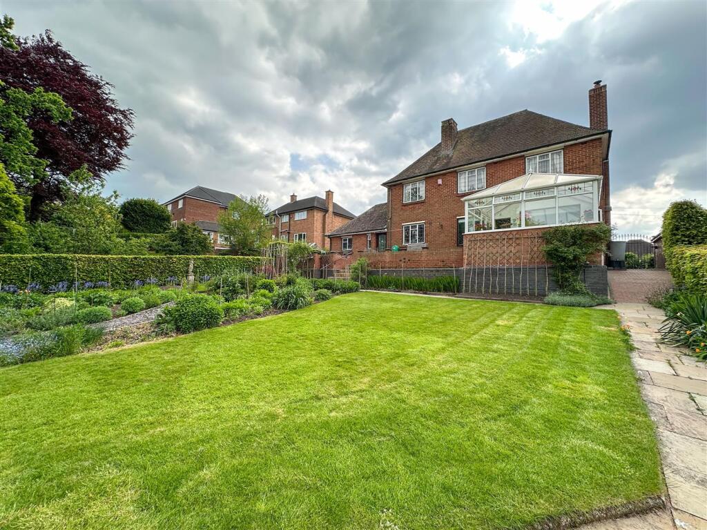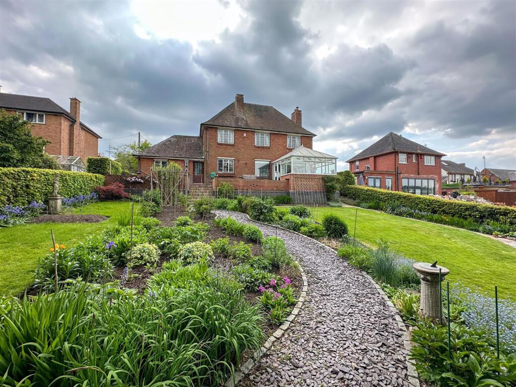 Percival Drive is located in Stockton Brook, Stoke-on-Trent. The property is a detached house with three bedrooms and one bathroom. It has a sizeable plot with a well-maintained garden, including a greenhouse and garden shed. The house itself appears to be in good condition, with a traditional style and some period features, such as stained-glass windows. The interior is well-presented, although some aspects might benefit from modernisation.
