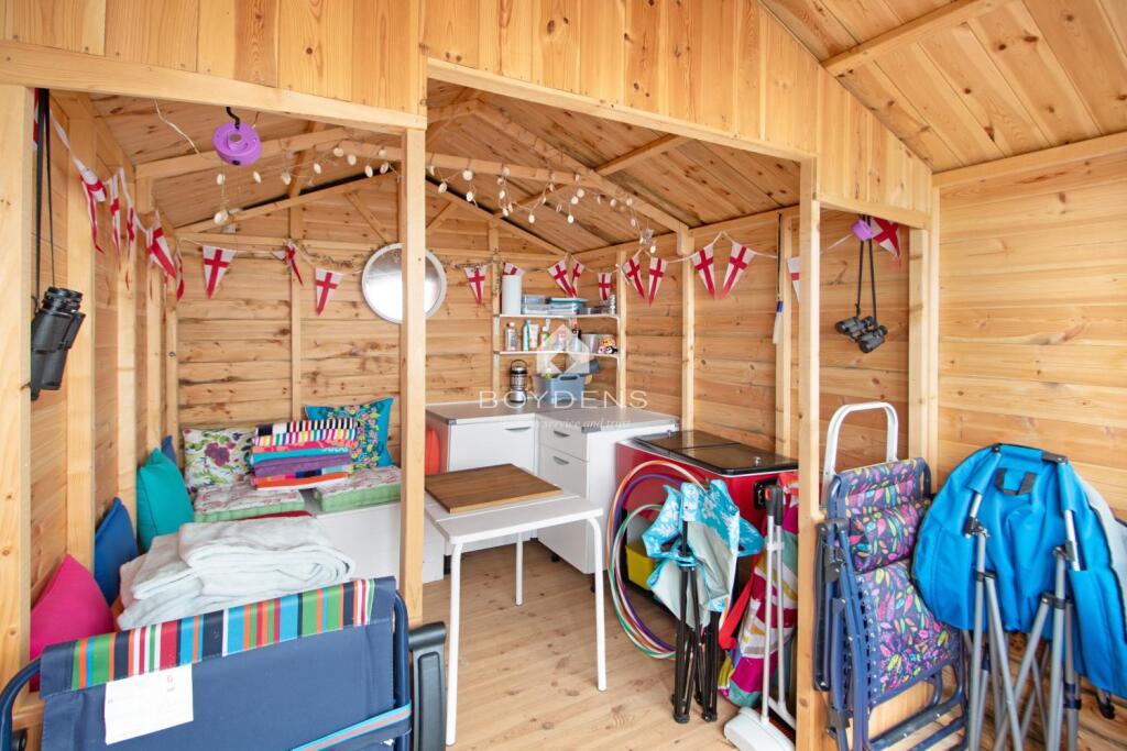 LOW WALL BEACH HUT, MODERN KITCHEN AREA, FANTASTIC POSITION, TASTEFULLY DECORATED INSIDE AND OUT, STORM DOORS, VIEWINGS AVAILABLE AND HIGHLY RECOMMENDED