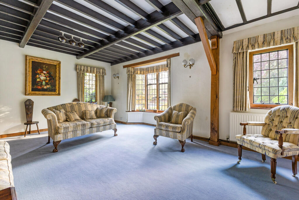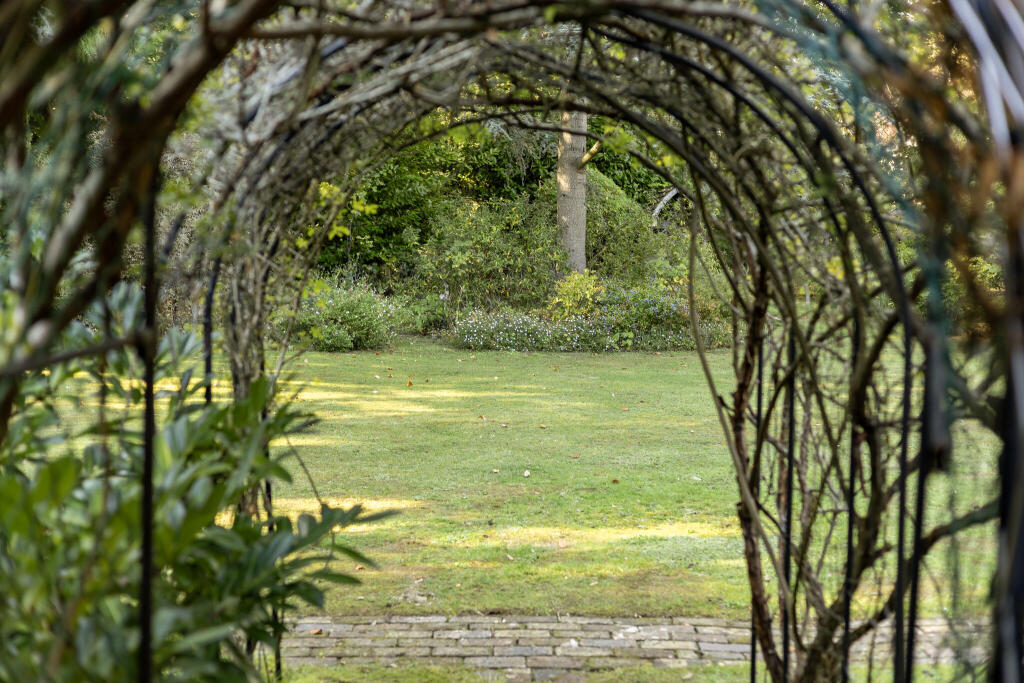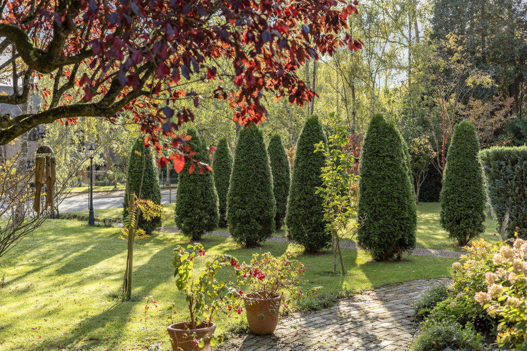 In a prime position within the conservation area that forms one of the most exclusive gated estates south of London, a charming, elegant, detached house of quality in the Arts and Crafts style, surrounded by secluded, beautifully stocked landscaped gardens of just over an acre.
