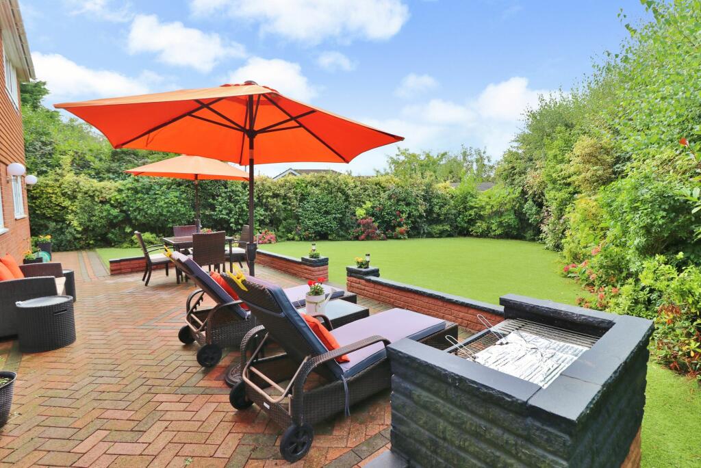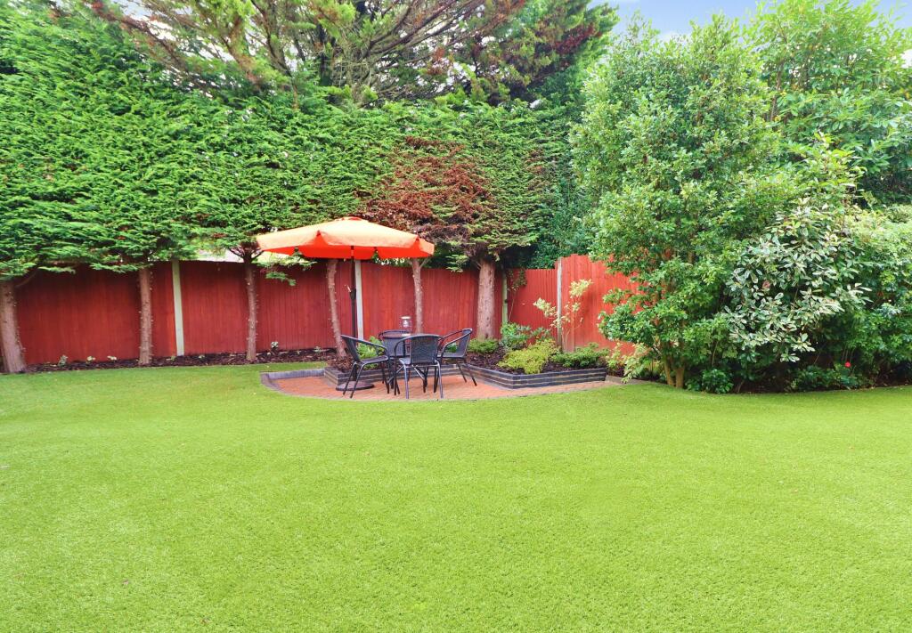 The property includes a substantial garden, as shown in the provided images. The garden is well-landscaped and offers ample space for outdoor activities.