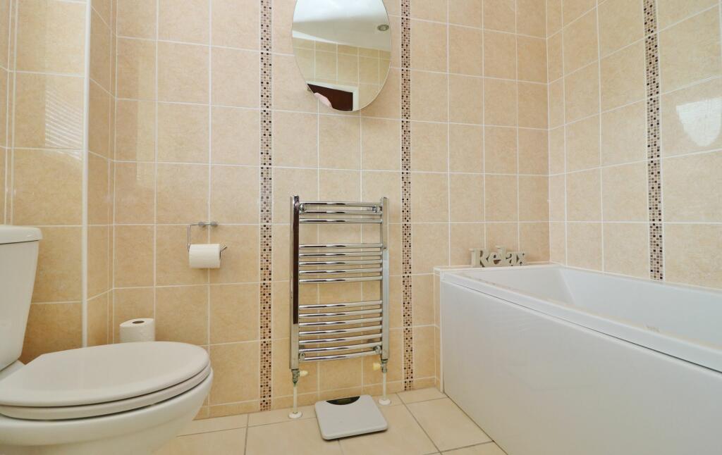 The property appears to be in excellent condition. The interior is modern, clean and well-presented. The kitchen and bathrooms are updated and well-maintained. There is no visible evidence of damage or disrepair. The garden is also well-maintained with a patio area and lawn.