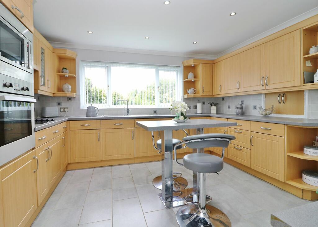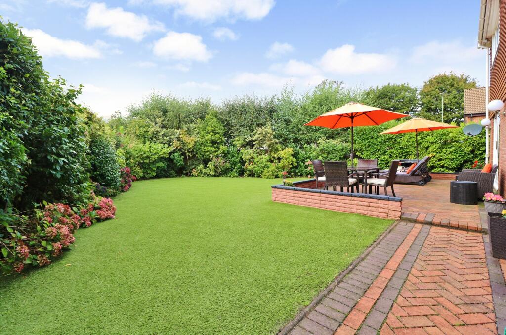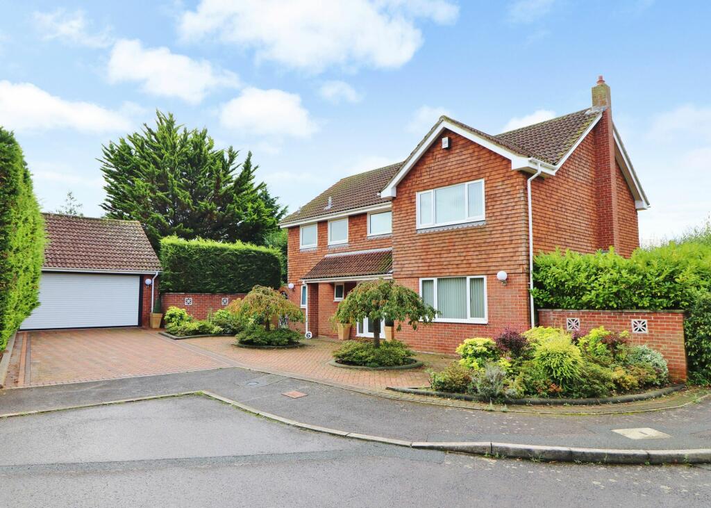 Situated on a corner plot, this spacious, four bedroom family home benefits from a landscaped south westerly rear garden which wraps around to the side, a large four car garage and ample driveway parking. The accommodation on the ground floor comprises an impressive, 26ft lounge, modern kitche...