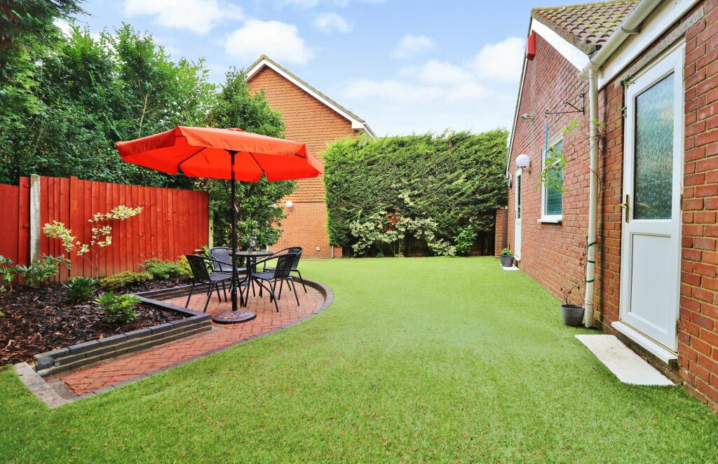 The property is located in Sarisbury Green, Fareham, Hampshire. The area benefits from several highly-rated primary schools within a short distance, including Sarisbury Infant School (Outstanding) and Sarisbury Church of England Junior School (Outstanding). Brookfield Community School (Good) is also nearby. The proximity to these schools makes the location attractive to families. Several train stations are within a reasonable distance, providing convenient access to other areas. The images show a well-maintained property with a sizable garden, contributing positively to its overall appeal.
