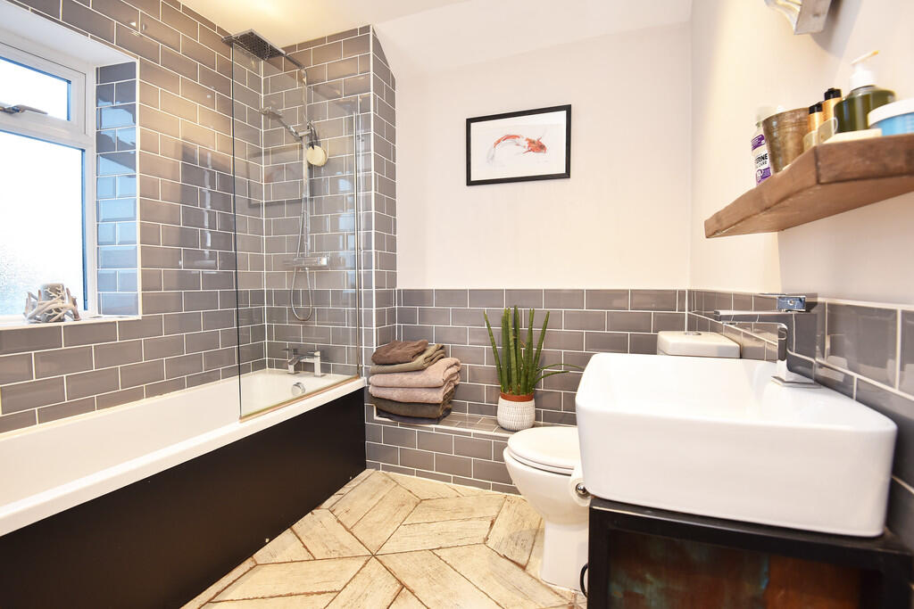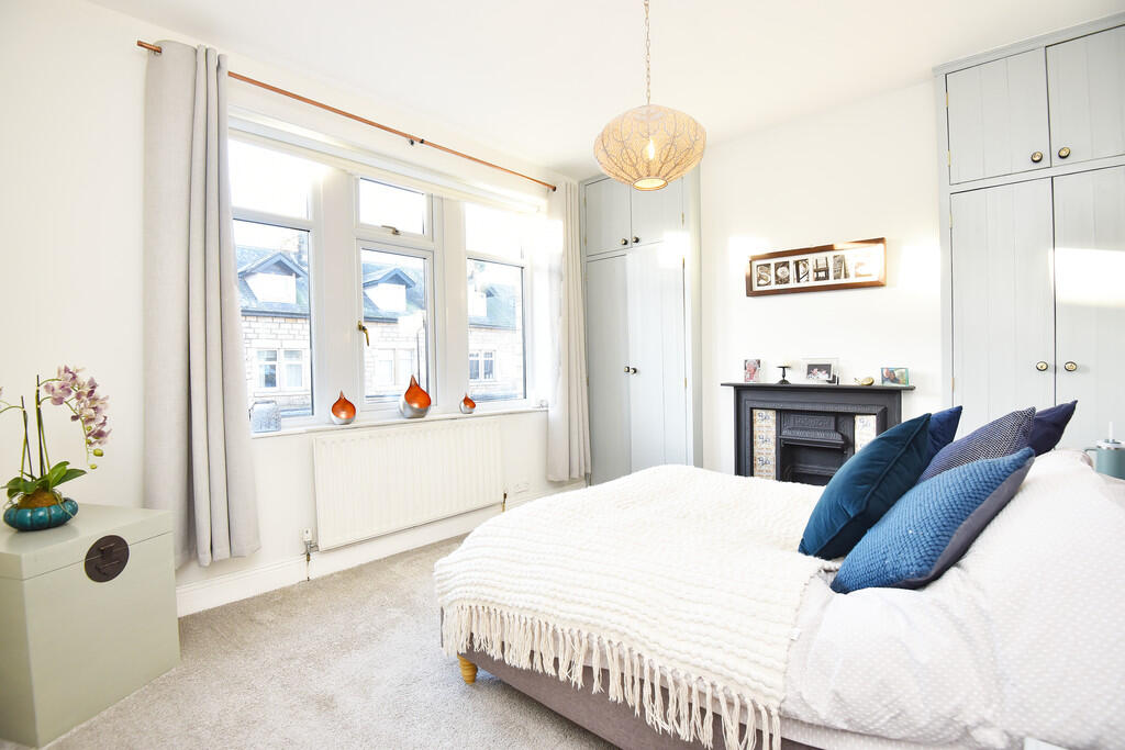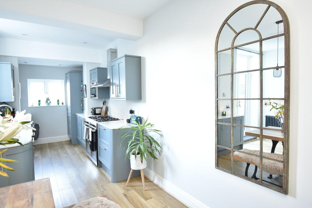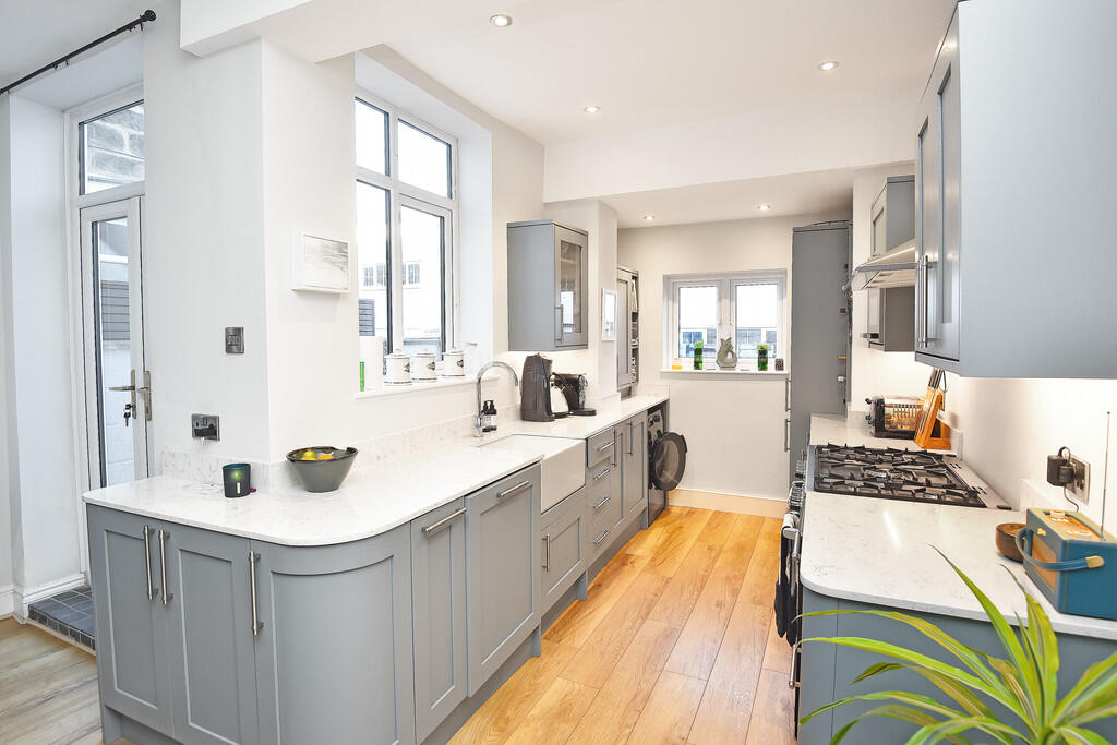 This property is a four-bedroom, two-bathroom terraced house located on Grange Avenue in Harrogate, North Yorkshire. The property benefits from a modern, updated interior with a recently renovated kitchen and bathrooms. The house appears to be in excellent condition, with tasteful decor and modern fixtures. There is a small, enclosed rear garden. The location is desirable, situated in a residential area with good access to local amenities, schools, and transport links. While the provided data lacks square footage, comparable properties in the area suggest the list price of £385,000 is within the reasonable range for a property of this type and condition in Harrogate.