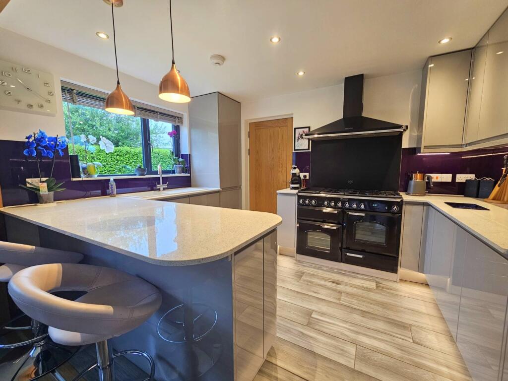 A modern 4 bedroom detached house that has been built to a high specification and is immaculately presented throughout. The property benefits from spacious accommodation throughout together with ample of outside space and 2 double garages with a gated access.