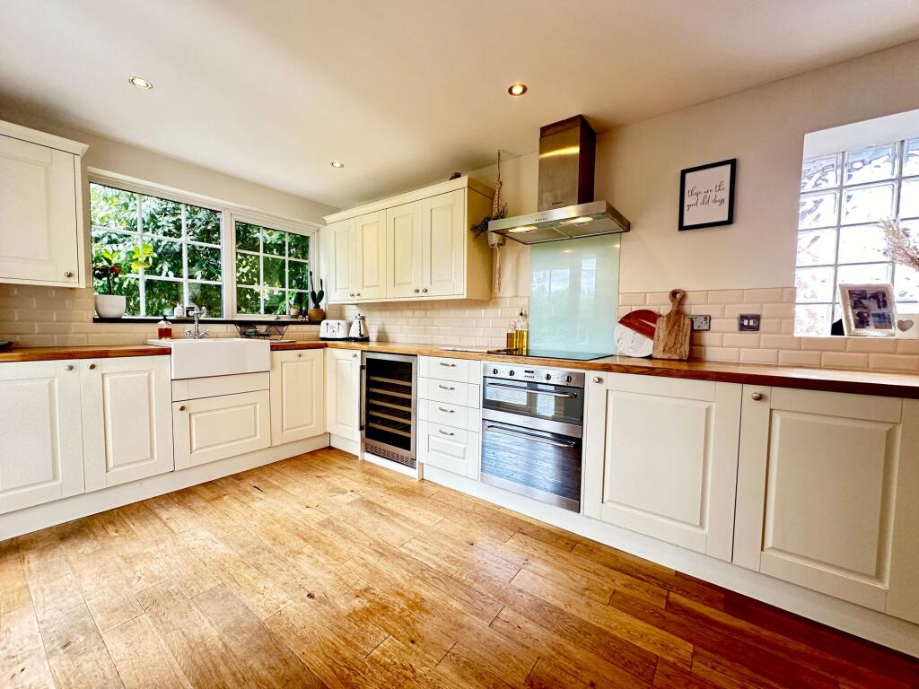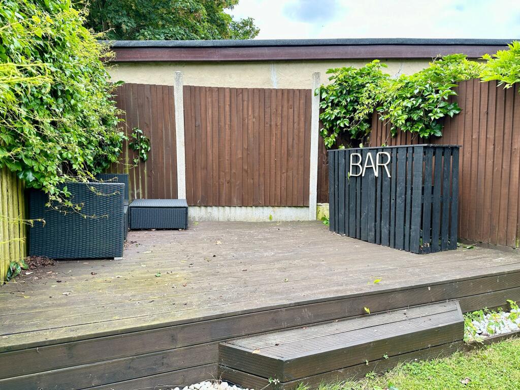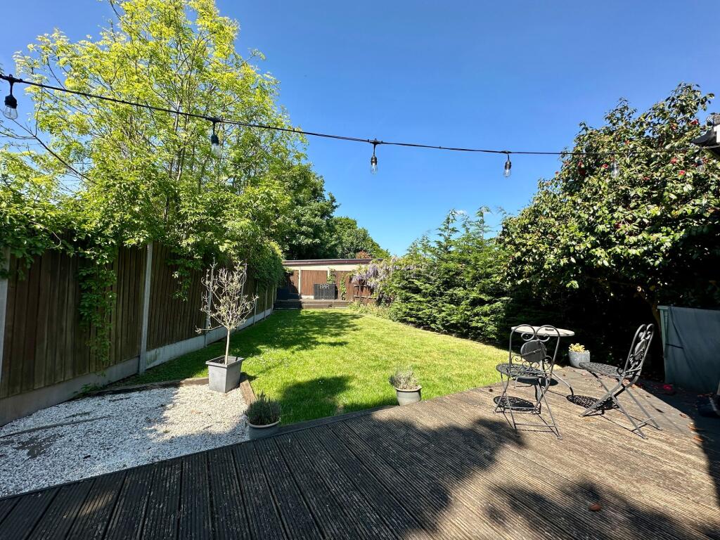 Spacious 3-bed detached bungalow with open plan living area, modern kitchen, west facing garden with decking and bar. Potential to extend into loft. Walled drive, gas heating, and no onward chain.