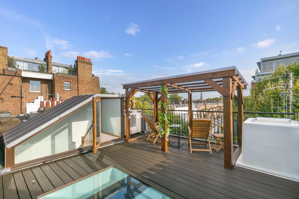 An impressive three bedroom duplex apartment with a lift, air-conditioning and access to a decked roof terrace, for sale on a prime residential address in South Kensington SW7. An elegant three bedroom duplex apartment, thoughtfully laid out across the third and fourth floor of a handsome red br...