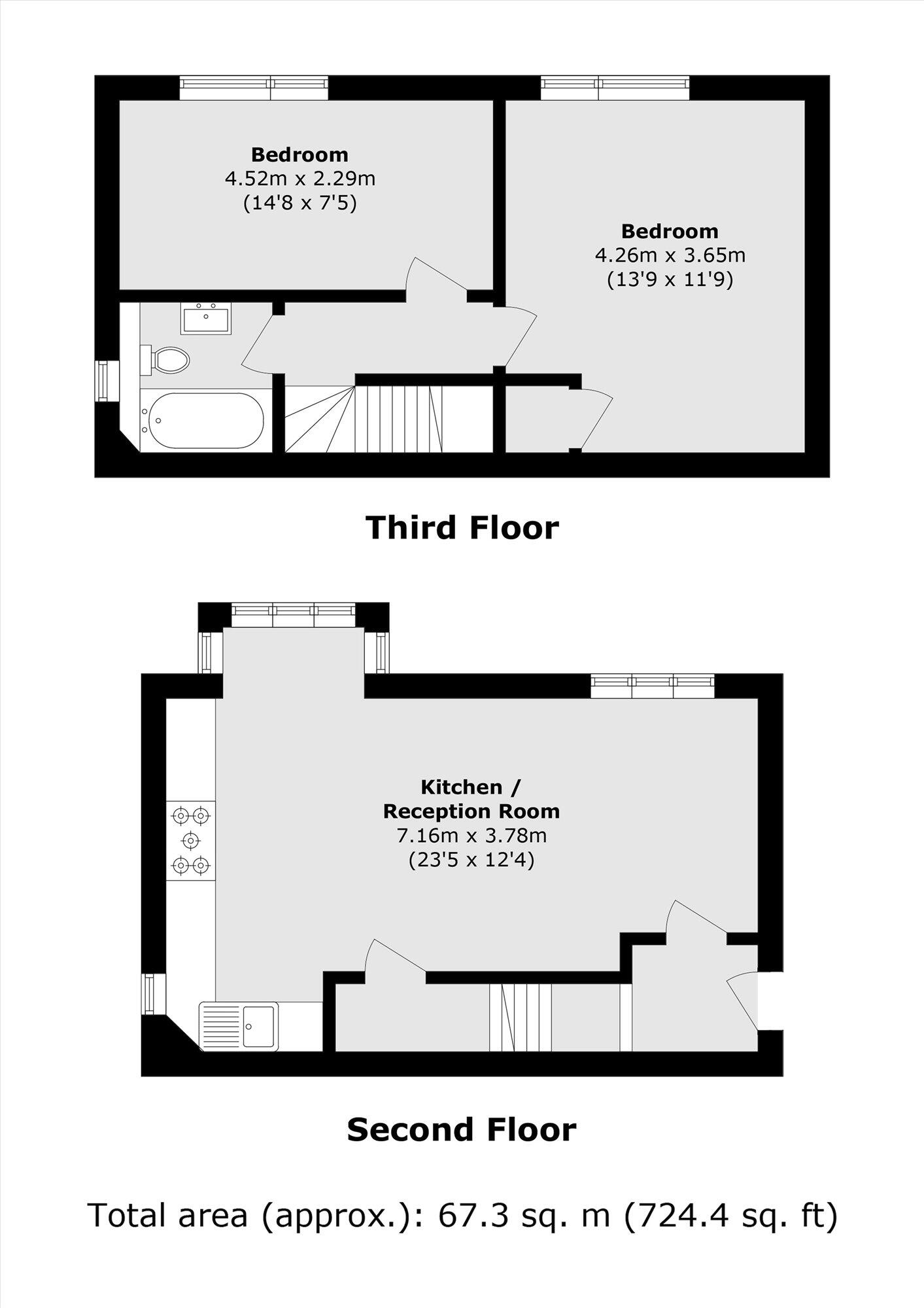 This striking two double bedroom apartment is situated within a well maintained building with communal gardens and residents parking. The apartment is spread over two floors, has an open plan living and kitchen and benefits from built in storage throughout.