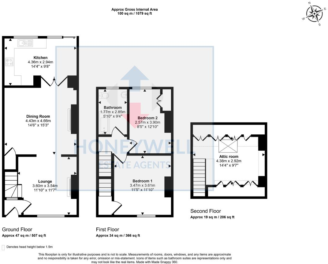 The property itself is a mid-terrace house with a total area of 1079 square feet. The photos reveal a property that is structurally sound but in need of some modernisation and updating. The interior shows some wear and tear, and the kitchen and bathroom appear dated. Cosmetic improvements and potential repairs would likely enhance the property’s value and appeal. The property includes a small paved rear yard, providing some outdoor space.