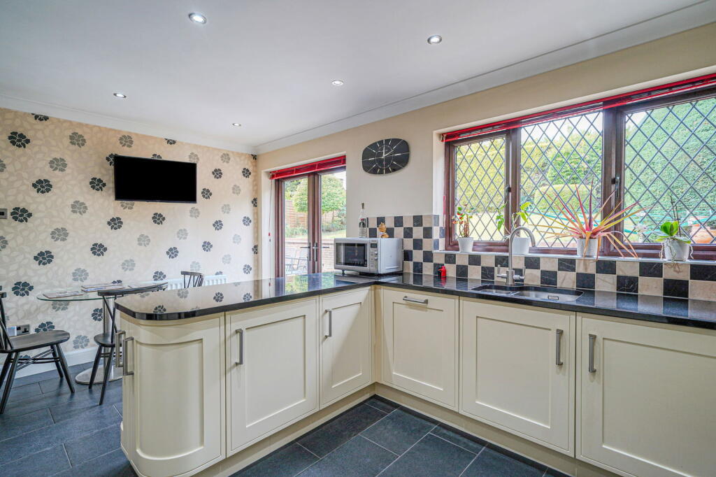 A substantial and very well presented five bedroom detached family home benefiting from open fields to the front. The accommodation briefly affords spacious entrance hall, lounge with feature Inglenook fireplace, dining room, breakfast kitchen, utility room, guest WC, master ...