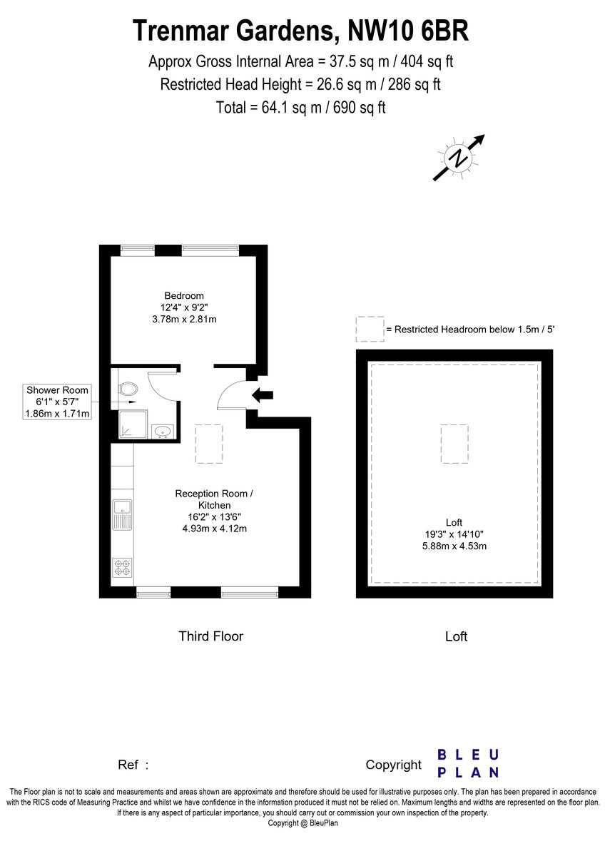 The property is a studio apartment located in Trenmar Gardens, London, NW10. Based on the provided images, the apartment appears to be newly renovated and in excellent condition, with modern fixtures and fittings. The location benefits from being close to several transport links, including Kensal Green Underground station (0.81 KM) and several Overground stations within a reasonable distance. There are also a number of well-regarded schools nearby, including several rated as “Good” or “Outstanding” by Ofsted. However, the property lacks a garden (plot size 0.00 sqft). The list price of £300,000 seems reasonable considering the average price per sqft in the area (£1,005.00) and the property’s condition and location, although significantly below the average property price in the area. Comparable properties in the same development are listed at higher prices, suggesting this property may be competitively priced.