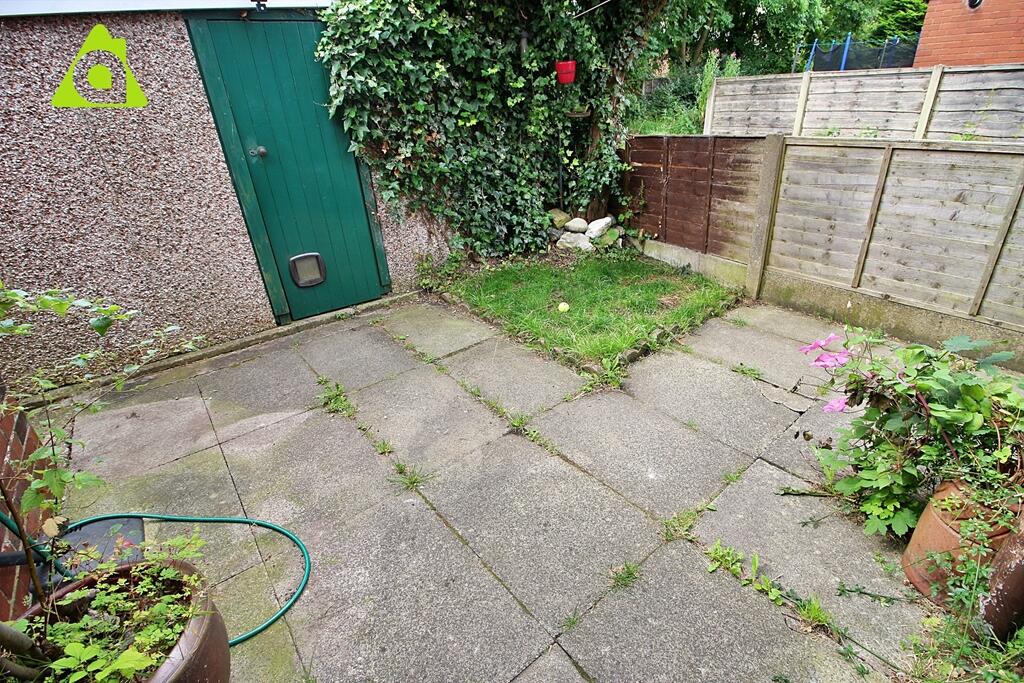 The small rear garden area is mainly paved but provides a manageable outdoor space. It contains some plants but isn’t extensive. The property also includes a garage.