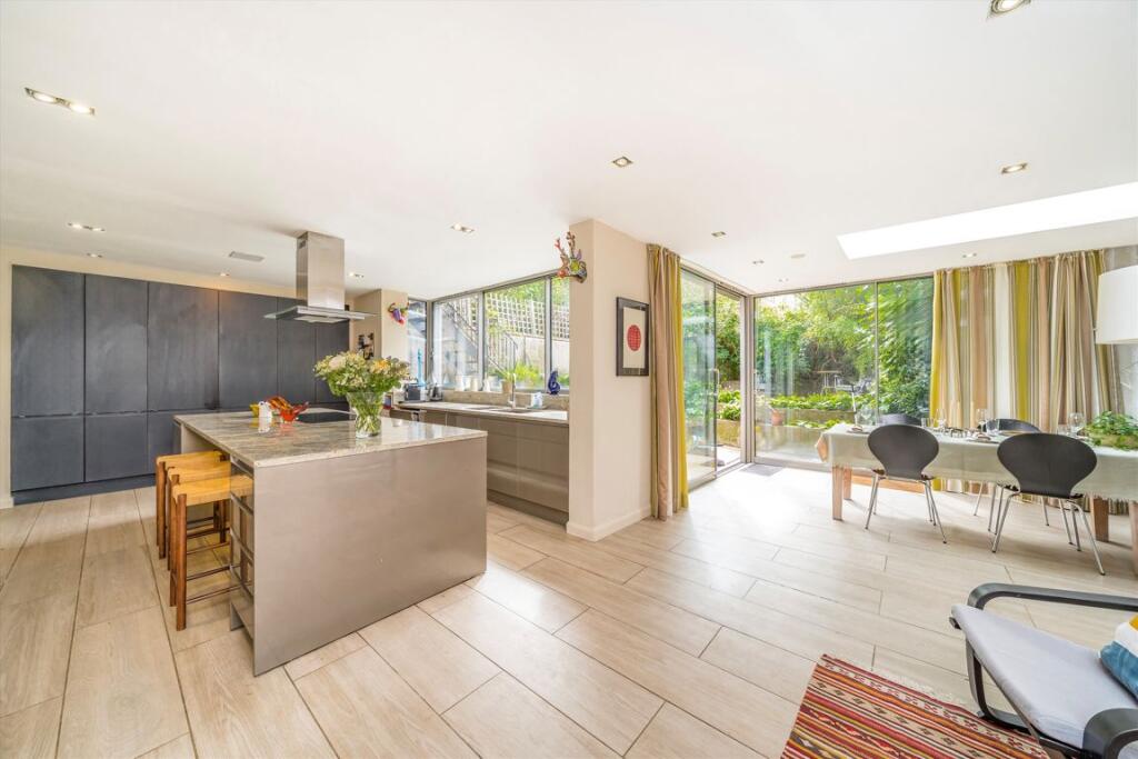 A stunning double-fronted early Victorian family home with five bedrooms, three receptions, off-street parking, south-facing terrace, and private garden, ideally located on a prime street in Clapham Old Town, close to Clapham Common