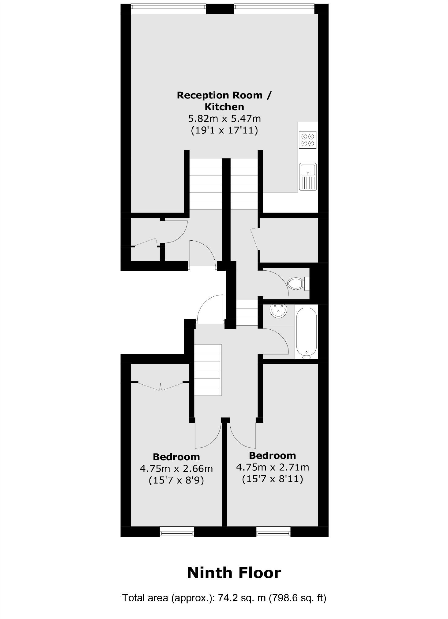 A split level two bedroom flat with fantastic views, equal sized double bedrooms, eat-in kitchen and lift access. On the doorstep of Victoria station this is ideal for professional sharers or a couple commuting into the City.