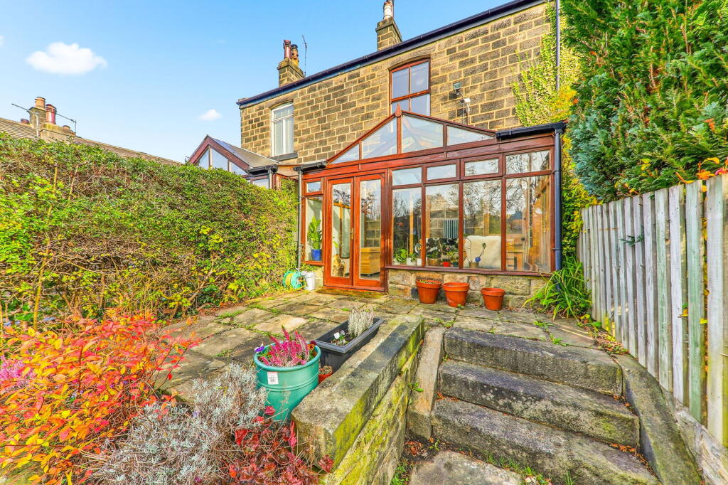 This is a two-bedroom terraced property located on Featherbank Lane, Horsforth, Leeds. The property is well-located, with good access to local schools, transportation, and amenities. The property appears to be in generally good condition, with a modern bathroom and well-maintained interior. However, some areas may benefit from updating. The property benefits from a good-sized garden. The property is listed at £325,000, which seems reasonable but perhaps slightly overpriced.