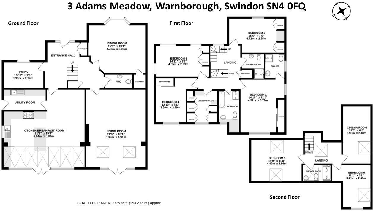 A superb 6 bed detached house located in the desirable cul-de-sac of Adams Meadow in the village of Wanborough. This spacious house (2,725 sq ft) has been greatly improved by the current owners and now benefits from a large loft conversion providing two double bedrooms, a shower room and a cinem...