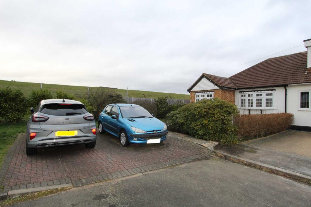 Located at the end of a cul-de-sac, siding onto the grounds of the water tower at Thundersley Common this semi detached bungalow offers 2 bedrooms, 21`5 lounge/conservatory, modern fitted kitchen, shower room and is close to the amenities at Thundersley Village