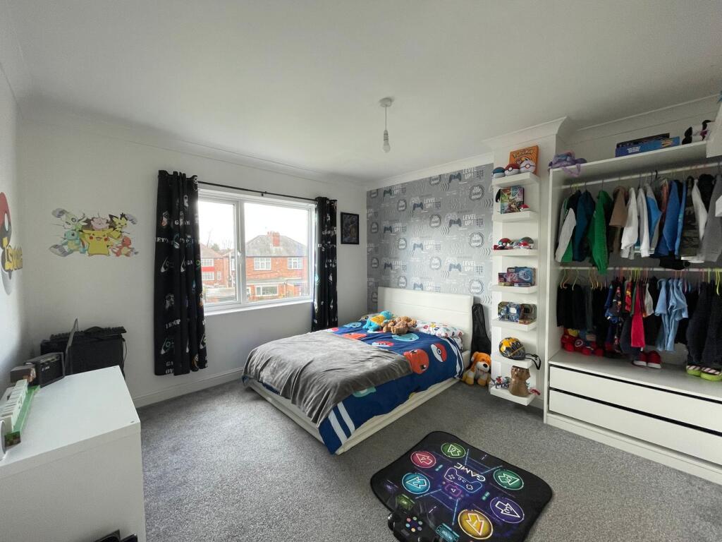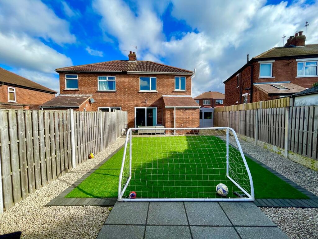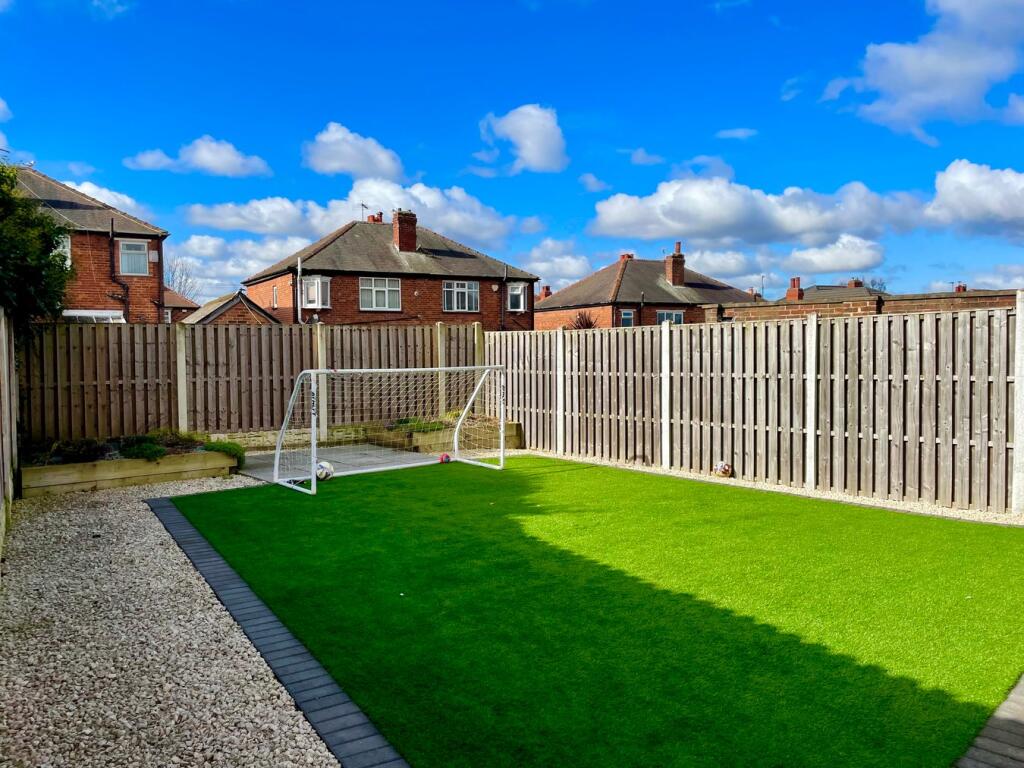 This three-bedroom semi-detached property is located in Hill Top Crescent, Doncaster, South Yorkshire. The property benefits from a good-sized rear garden with artificial turf, and a detached garage. The interior appears to have been recently modernised, with a contemporary kitchen and updated bathrooms. The property is presented in good condition throughout.