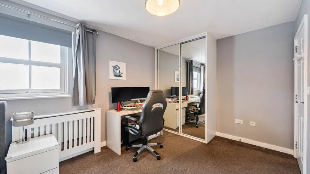 This is a two-bedroom flat located in Romford Town. The property is in good condition, with a modern kitchen and bathroom. The flat is conveniently located near schools, transportation, and other amenities. The property includes a small balcony. The price appears to be in line with the market. The flat is located close to Romford Station.