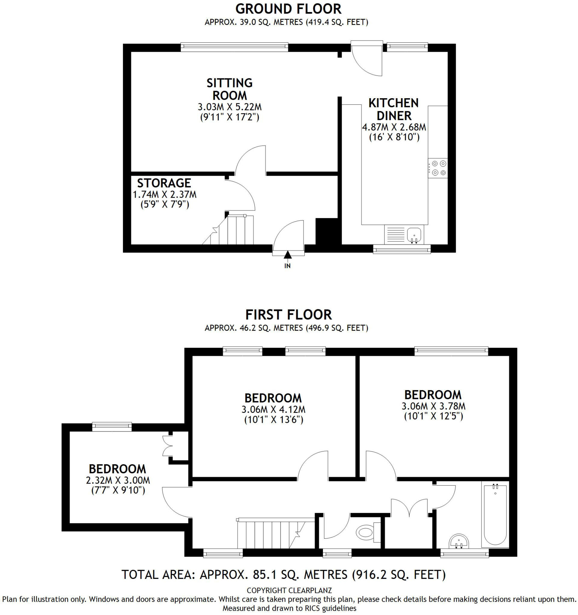 **Garage** **Good size** **Recently Redecorated** Entrance hallway, study area, living room, kitchen / dining room, three bedrooms, bathroom, separate WC, garage, garden and communal parking.