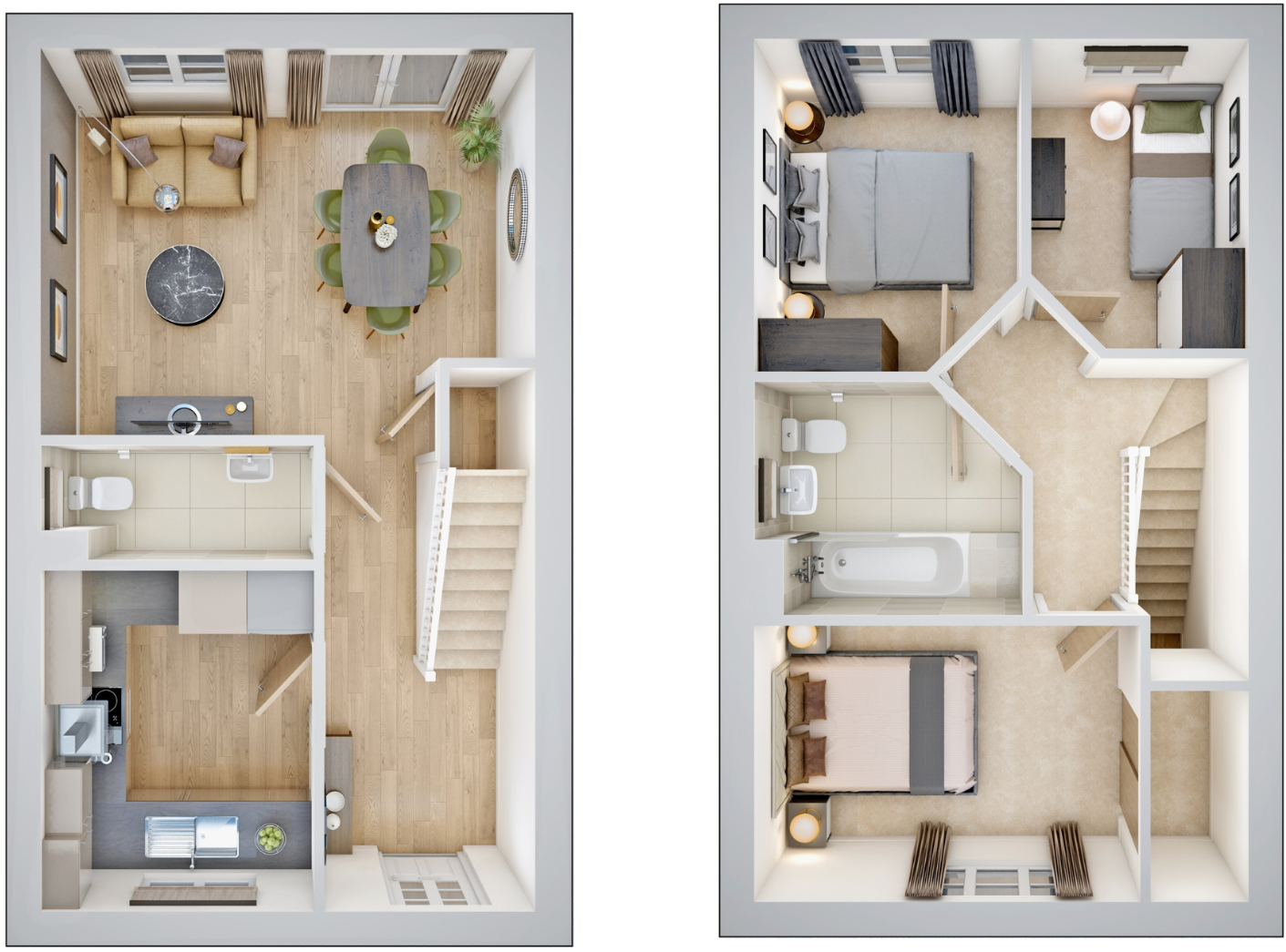 Home 67 - IDEAL FIRST-TIME BUYER HOME. GENEROUS ENTRANCE HALL with WC and UNDER STAIRS STORAGE. OPEN-PLAN LIVING and DINING SPACE with FRENCH DOORS to the REAR GARDEN. MODERN U-SHAPED KITCHEN. TWO DOUBLE BEDROOMS, a GENEROUS SINGLE, and a CONTEMPORARY FAMILY BATHROOM. TWO PARKING SPACES.