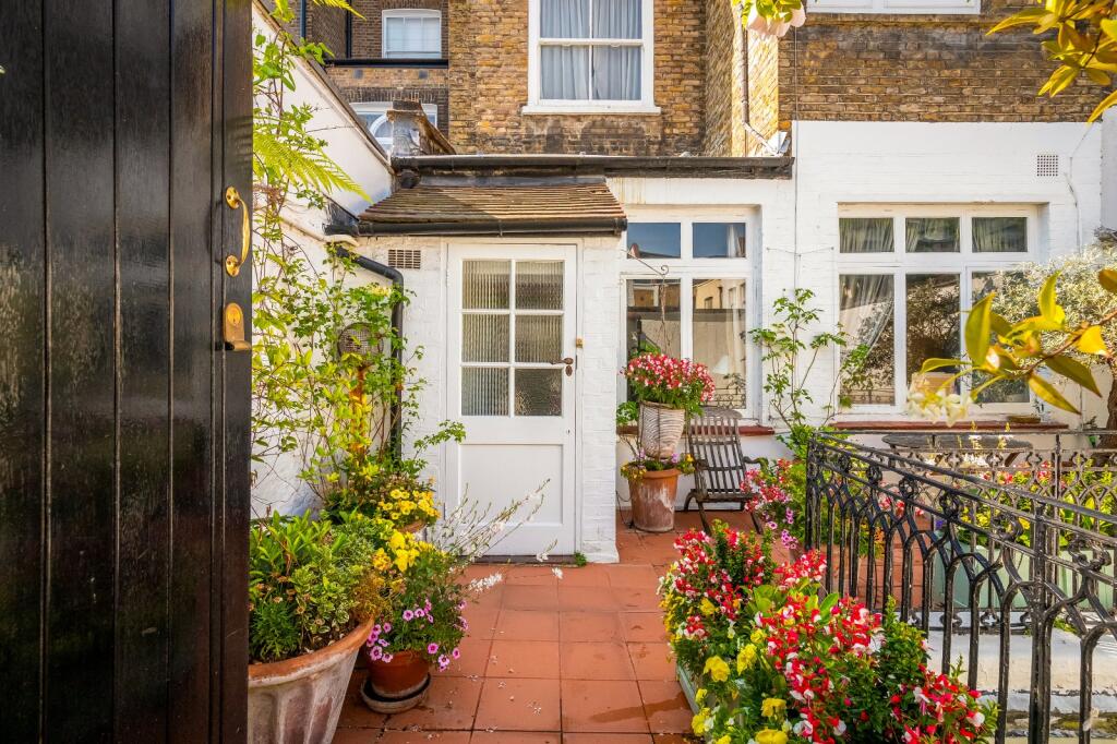 This raised ground-floor mews flat comprises of a large living room, a double bedroom with built-in storage, a separate kitchen, and bathroom. Of particular note, the property comes with a peaceful courtyard shielded by the surrounding garden wall, perfect for outdoor dining. This property is per...