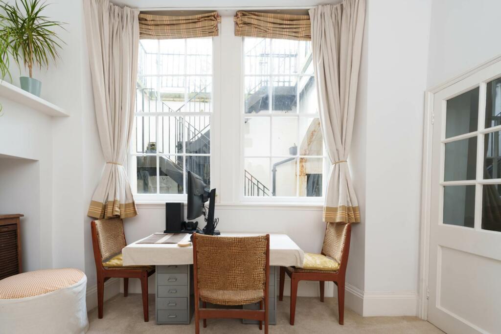 Grosvenor Place is a stunning example of Bath architecture. This property has a private front door with excellent living space and period features. The bedroom is a great size and there is a separate kitchen. Abundant storage throughout. Vaults. Well presented. No chain.