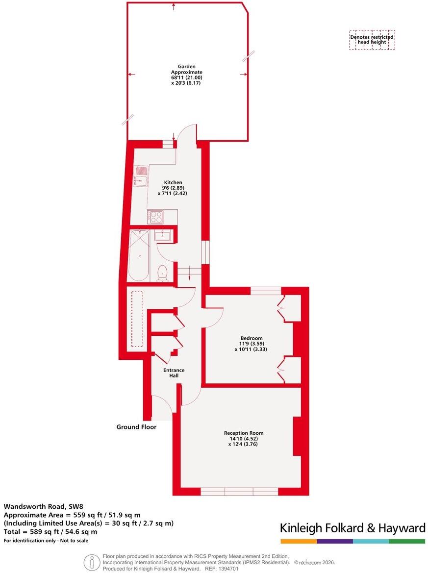 This is a one-bedroom property on Wandsworth Road, London. It is listed by Kinleigh Folkard & Hayward - Sales. The property benefits from a garden and is located in a well-connected area with good access to transportation and schools. The property appears to be in good condition, with modern fixtures and fittings. However, the price seems high compared to the average price per square foot in the area.