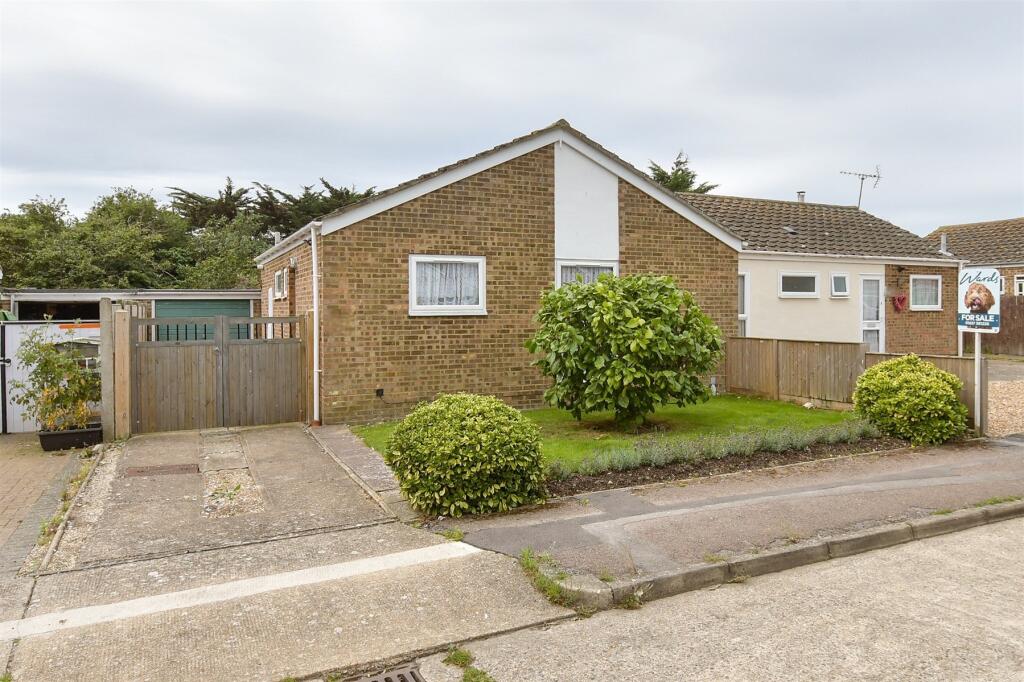 The property is a semi-detached bungalow located in Herne Bay, Kent. The location benefits from nearby schools and transportation links. Based on the images, the property appears to be in good condition. The property includes a garden, shed, patio area and garage. The list price is £215,000 for a 400 sqft property.