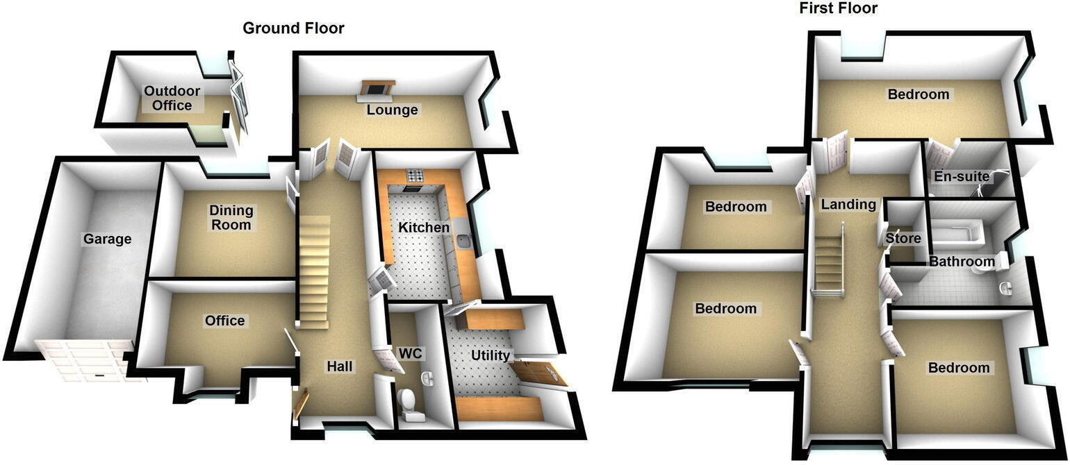 A fabulous detached property with four bedrooms, three reception rooms, excellent location with loads of external space and an outdoor home working space, ideal family home.