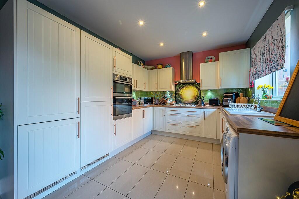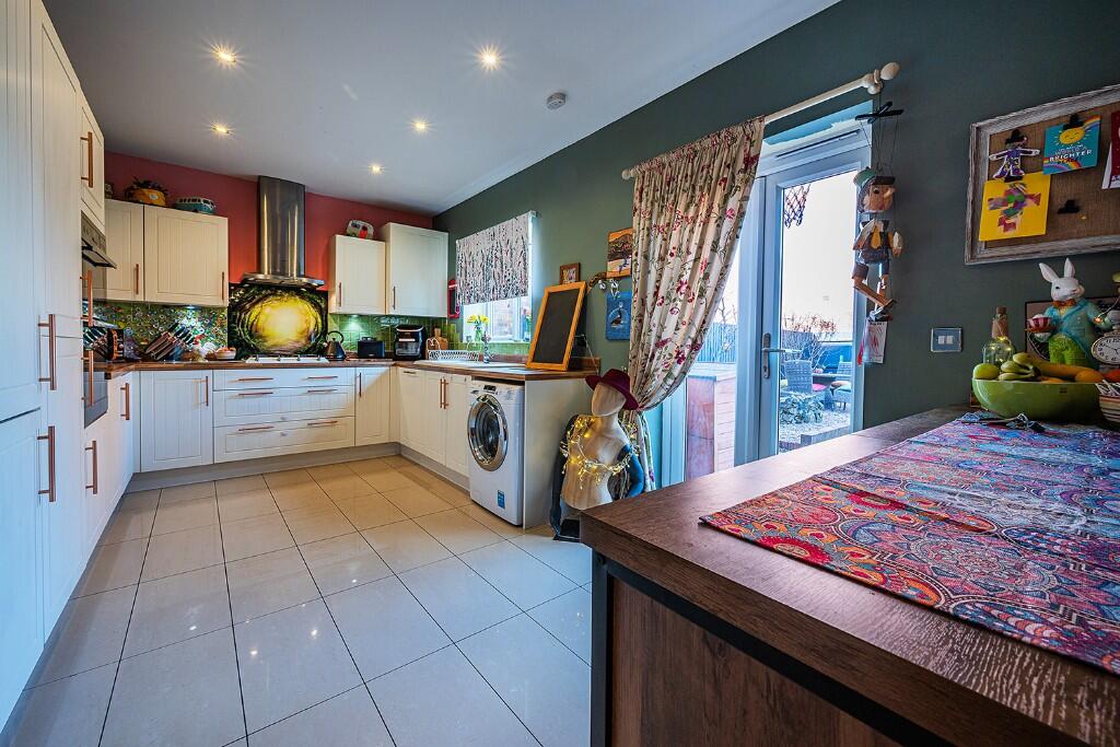 This property is a four-bedroom, two-bathroom detached house located in Massey Close, Bannerbrook Park, Coventry. The location benefits from relatively close proximity to several schools, including St. Andrew’s Church of England Infant School (rated “Good” by Ofsted) and Eastern Green Junior School (also rated “Good”). West Coventry Academy is a bit further, but still within reach. Transport links appear reasonable, with Tile Hill train station approximately 2 KM away. The property itself is modern and well-maintained, as shown in the photographs. It features a garden with a patio area, and there is off-street parking. The interior is presented to a high standard and has been decorated to a modern style. The list price of £525,000 is higher than the average price for the area (£282,828), but considering the property’s size (1624 sqft), condition, and features, it may be considered reasonable, particularly in comparison to similar properties in the area which are listed at higher prices.