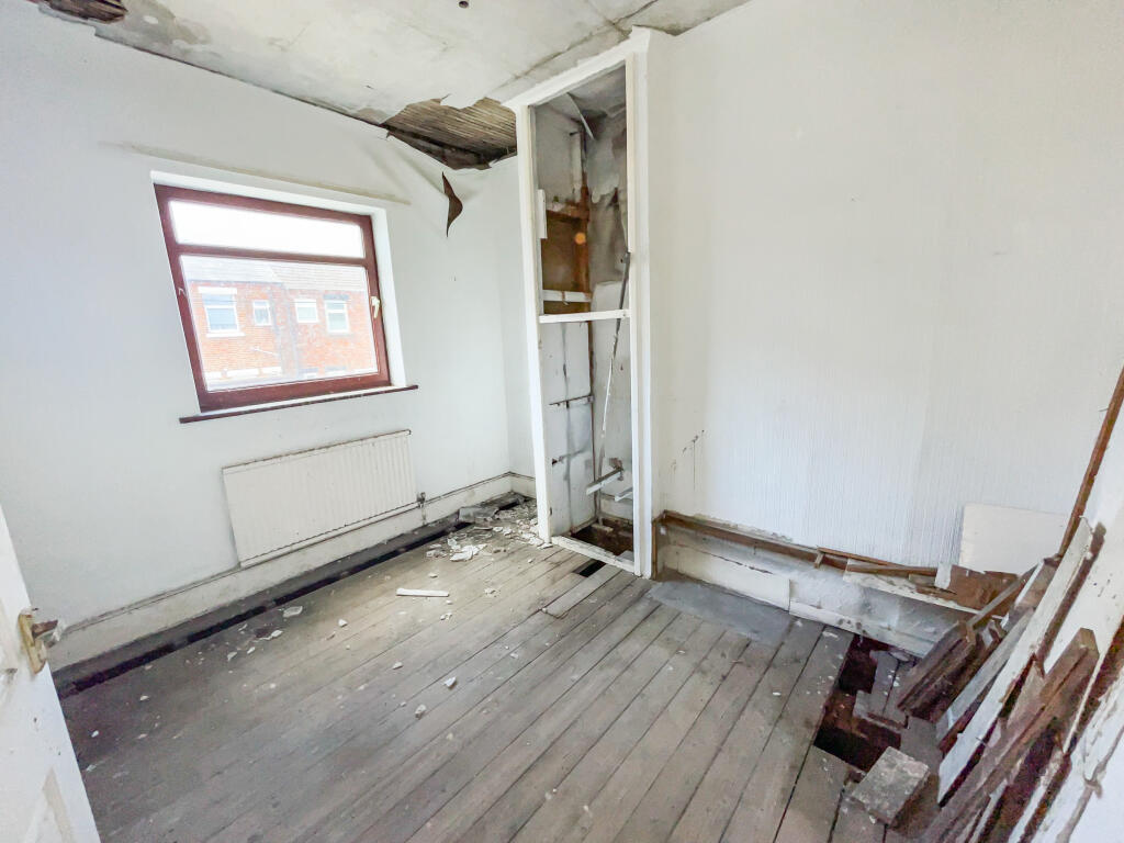 This is a two-bedroom terraced house in Horden, Peterlee, listed for a very low price of £8,000. The property requires extensive renovation throughout, as evidenced by the damaged interior, including walls, ceilings, floors, kitchen, and bathroom. While the location is not exceptional, it is within a reasonable distance of local amenities and schools. The property includes a small yard. Given the very low price, this property represents a significant opportunity for investors or those willing to undertake a full renovation project. The average price per square foot in the area is £45, and the property is 818 sqft. Nearby transportation includes Seaham station. Nearby schools include Cotsford Primary School, which has a ‘Good’ Ofsted rating.