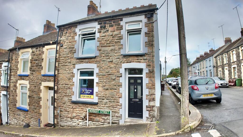 This is a three-bedroom terraced property located on Herbert Street, Brithdir, New Tredegar. The property is listed with Flying Keys estate agents for £150,000. The property benefits from its proximity to local transportation, with Brithdir train station nearby. Several schools are also located within a reasonable distance. Internally, the property appears to be in good, modern condition, with a modern kitchen and bathroom. The property has a small paved outdoor area. The listing price is slightly above the average for the area, but the condition of the property may justify this.