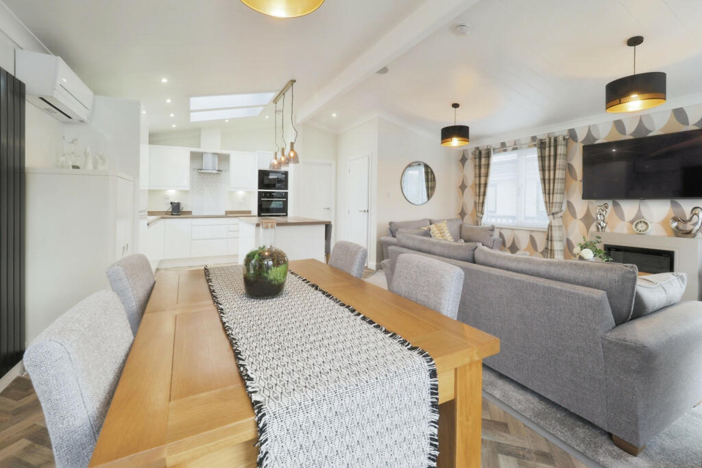 This property is a modern, well-maintained park home located in the village of Blyton, Lincolnshire. The photos reveal a contemporary design and high-quality fixtures and fittings throughout. The open-plan living area is bright and spacious, with a modern kitchen and a comfortable seating area. The bedrooms are well-presented, and the bathroom is stylish and well-equipped. There is a small, private garden area, offering some outdoor space. The location in Blyton offers a tranquil setting, while still being within reasonable driving distance of Gainsborough, providing access to a wider range of amenities and transport links, including train stations. The nearby Blyton Cum Laughton Church of England School is rated ‘Good’ by Ofsted, making it an attractive option for families. However, being a park home might limit its appeal to certain demographics. The lack of precise square footage data for local properties inhibits an exact price-per-square-foot analysis, but the listed price appears to be in line with the market value for similar properties in the area, given its condition and location.