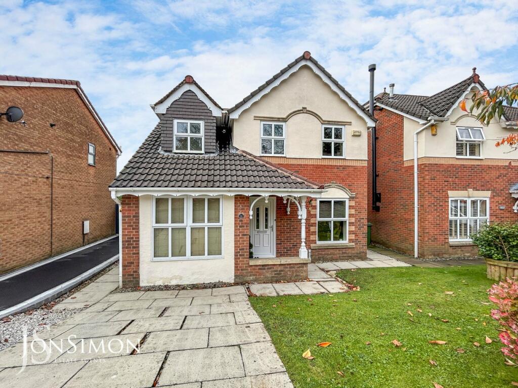 This four-bedroom detached house is located in Ramsbottom, Bury. The property has been professionally extended and boasts a stunning garden room, ideal for working from home. The house is well-presented and spacious, situated on a popular residential development. The nearby area has excellent schools, including Hazlehurst Community Primary School and St Joseph’s Roman Catholic Primary School, both rated as Outstanding by Ofsted. Bromley Cross train station is approximately 9.94km away. The list price of £425,000 is higher than the average price for the area (£322,121), but comparable to other properties in the immediate vicinity. The property appears to be in good condition based on the photos provided. The plot size is not specified.