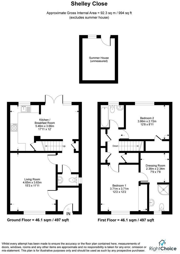 Right Choice Estate Agents are delighted to offer to market this two bedroom end of terrace family home. The ground floor offers an entrance hallway, fitted kitchen/ dining room, living room and w/c. The first floor benefits from two double bedrooms the master of which has a walk in wardrobe and...