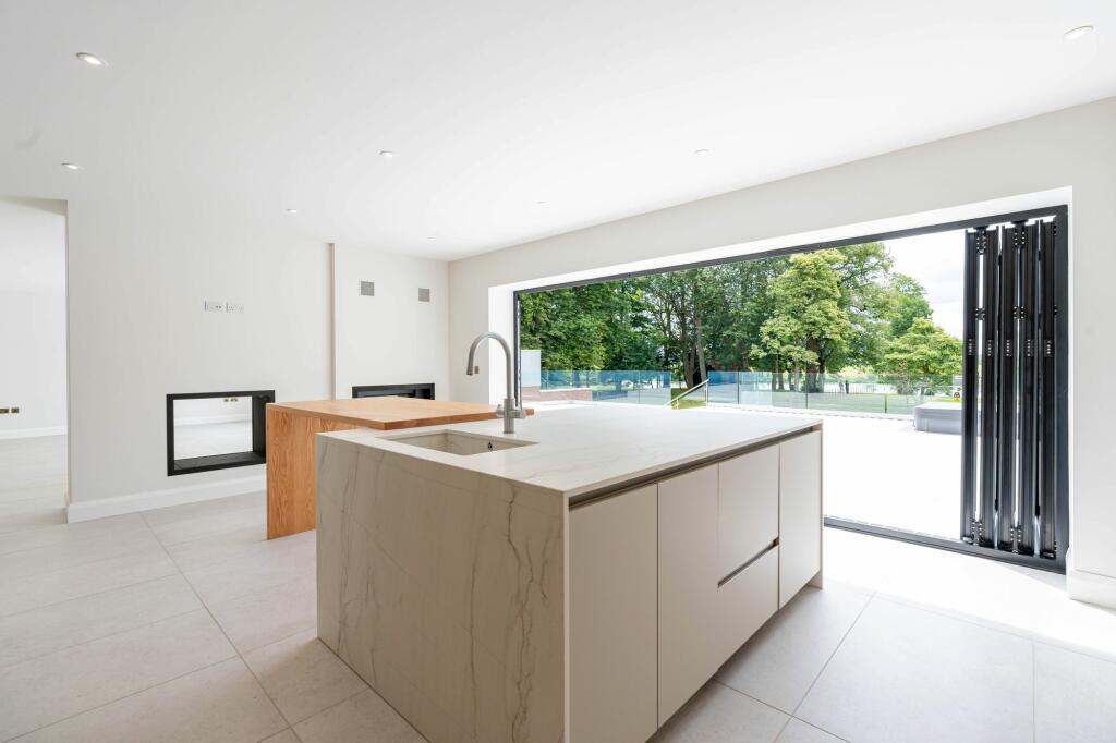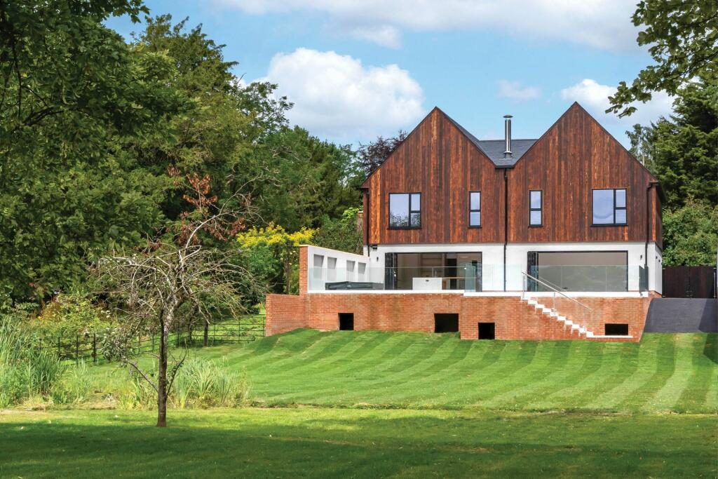 Newly built riverside home with south-facing garden and Thames views. Bespoke kitchen, hot tub, 5 bedrooms with luxury ensuites, study, media room, EV charge point, and advanced security features.