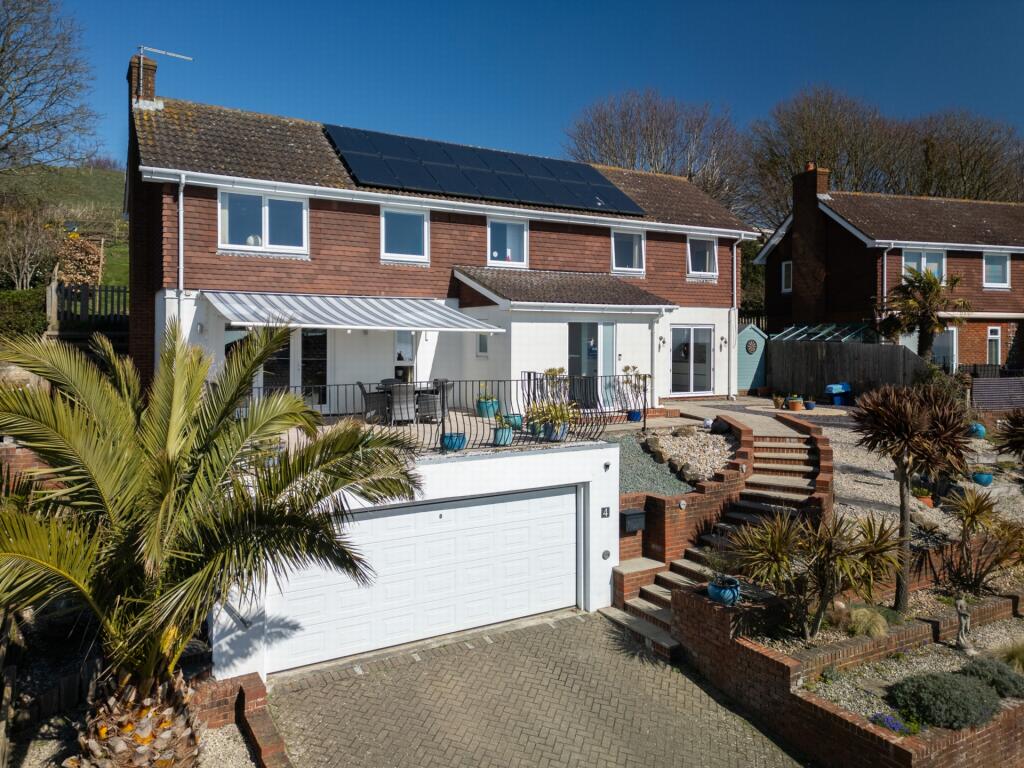 This property is a four bedroom detached house located on Upper Corniche in Sandgate, Kent. The location offers stunning sea views and is within reasonable distance of local amenities and transport links. The property appears to be in excellent condition, having undergone recent modernisation, as evidenced by the high-quality kitchen and modern fixtures. The garden is tiered and offers a variety of plants and shrubs, providing a pleasant outdoor space. While specific square footage is not provided, the list price of £825,000 seems relatively consistent with other comparable properties in the area, particularly considering the exceptional views and condition of the property.