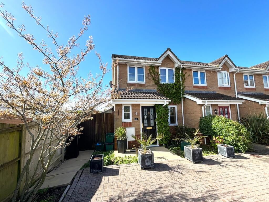 An end terrace home in a pleasant cul de sac backing onto fields with a beautifully landscaped garden and outstanding views. Three bedrooms, cloakroom, lounge, dining room, modern kitchen, bathroom and en-suite shower room. There is also allocated parking and carport.
