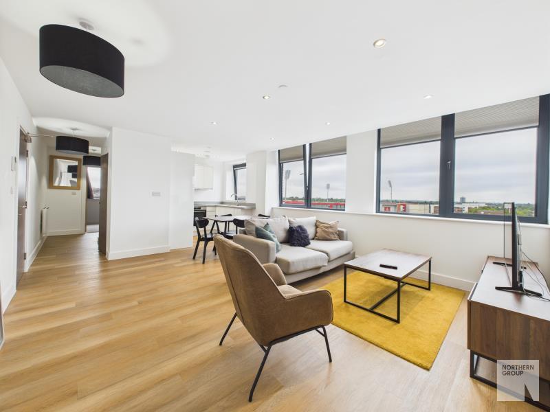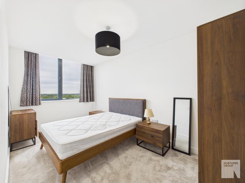 Available now – 2-bed furnished apartment in Alexander House, Old Trafford (M16). Open plan living, en suite, stylish bathroom, storage, parking included. Excellent transport links.